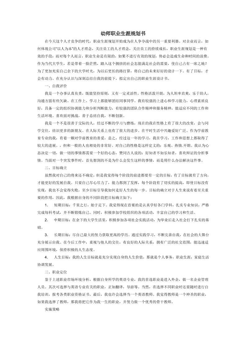 幼师大学生职业生涯规划书
