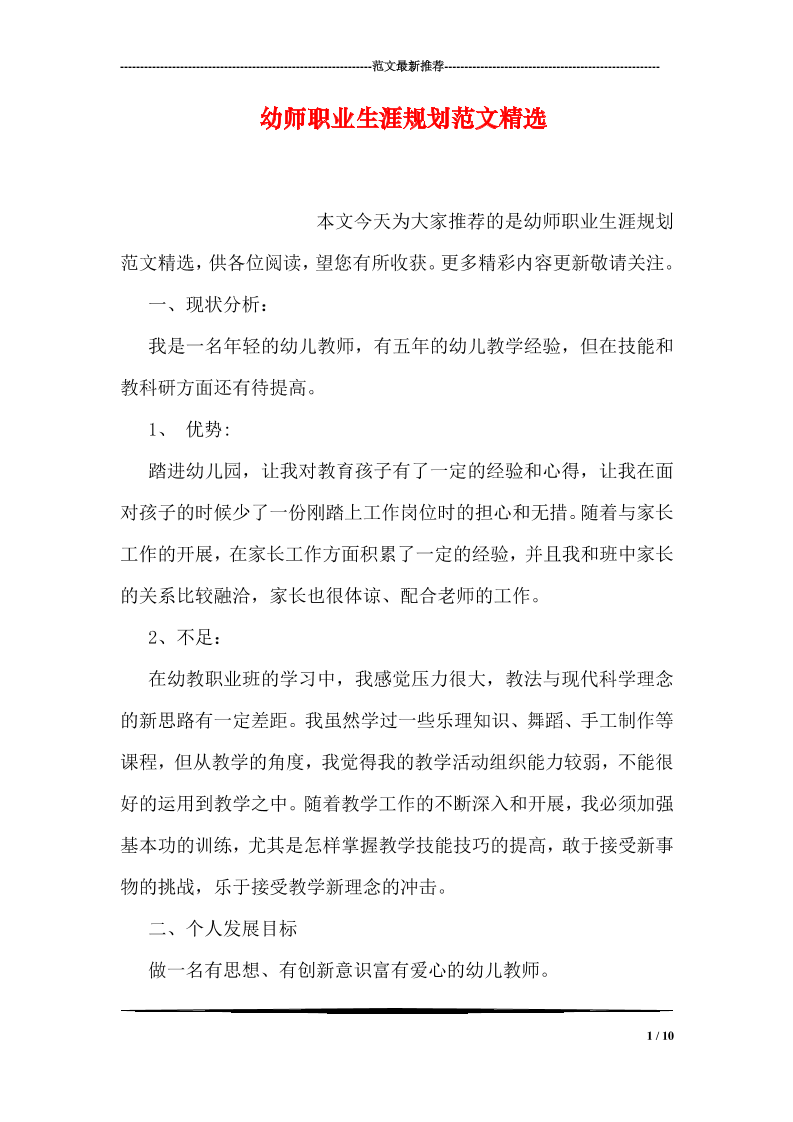 幼儿教师职业生涯规划 (1)