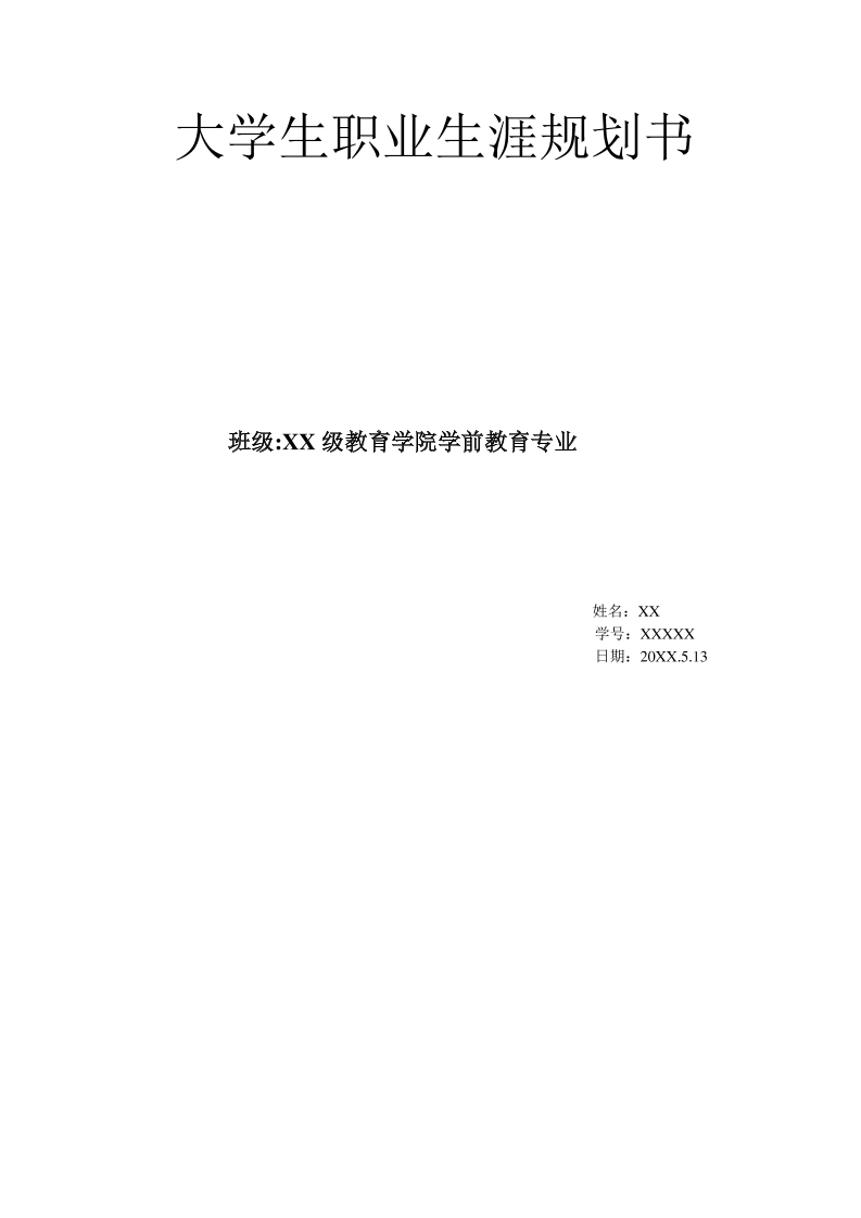 教师学前教育大学生职业生涯规划书Word文档