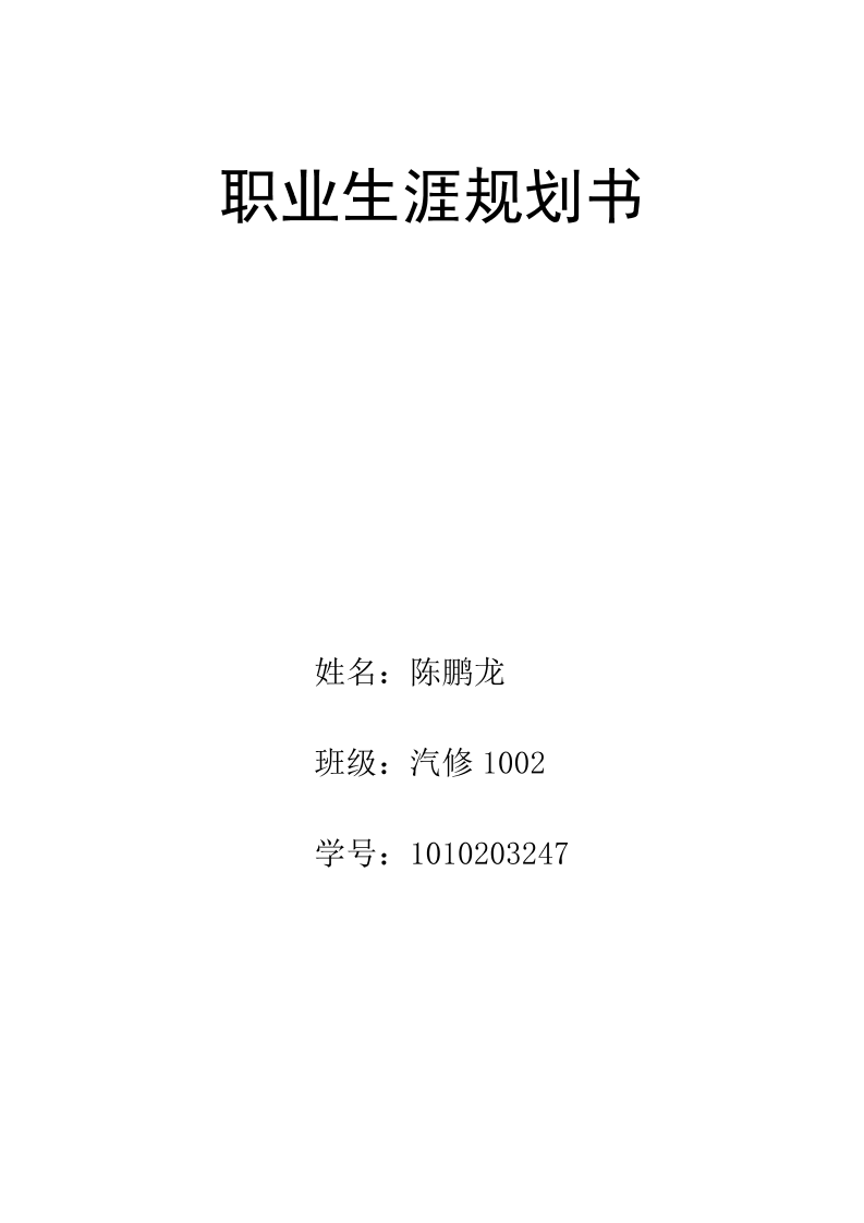 职业生涯规划书(汽修专业用)模板(陈鹏龙)