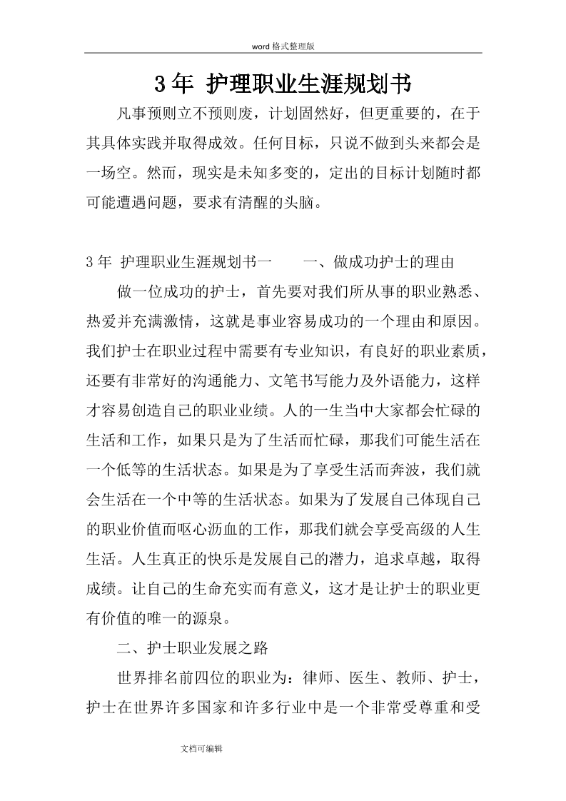 3年-护理职业生涯规划书
