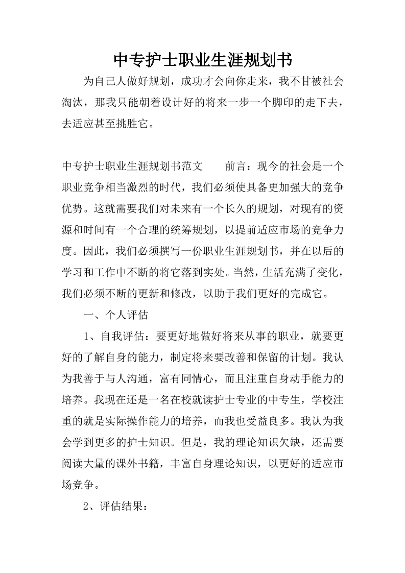 中专护士职业生涯规划书