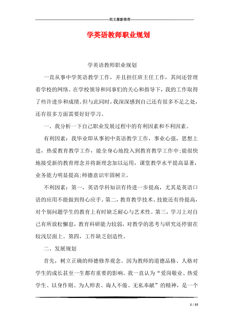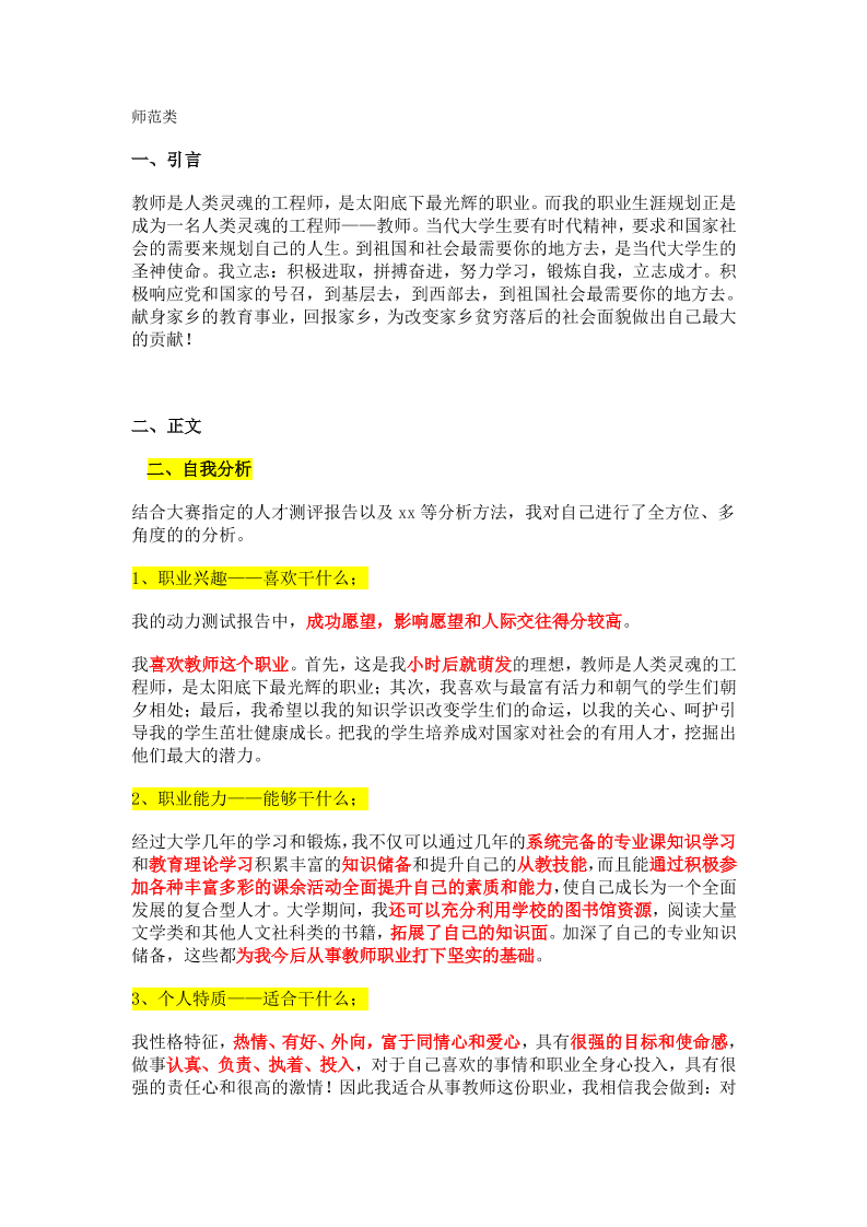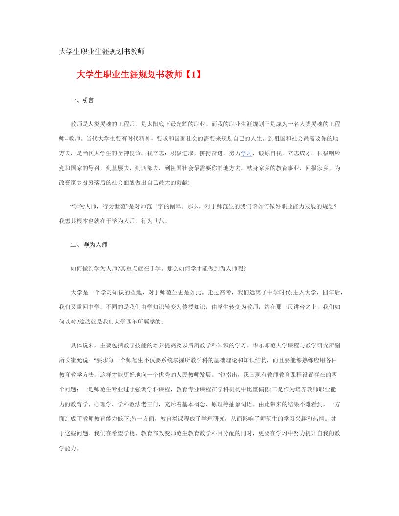 大 学 生 职 业 生 涯 规 划 书 教 师 职 业