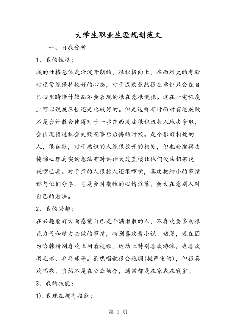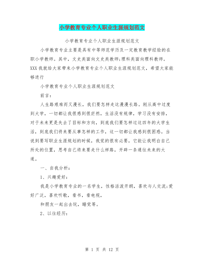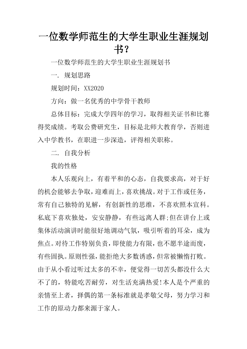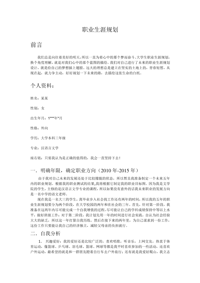大 学 生 职 业 生 涯 规 划 书 教 师 职 业