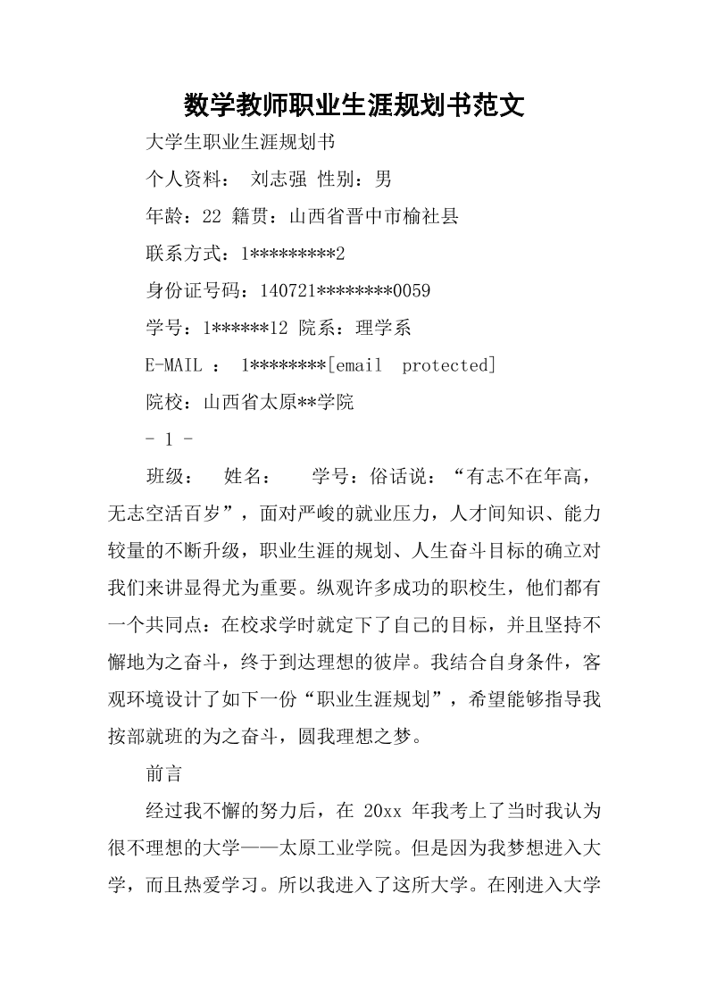 数学师范 大学生职业生涯规划书