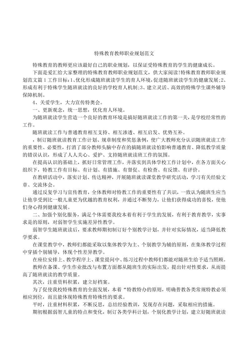 特殊教育教师职业规划范文