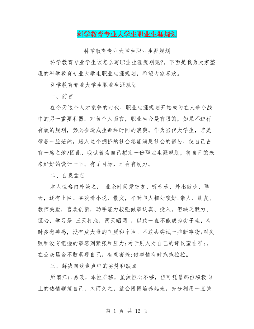 科学教育专业大学生职业生涯规划