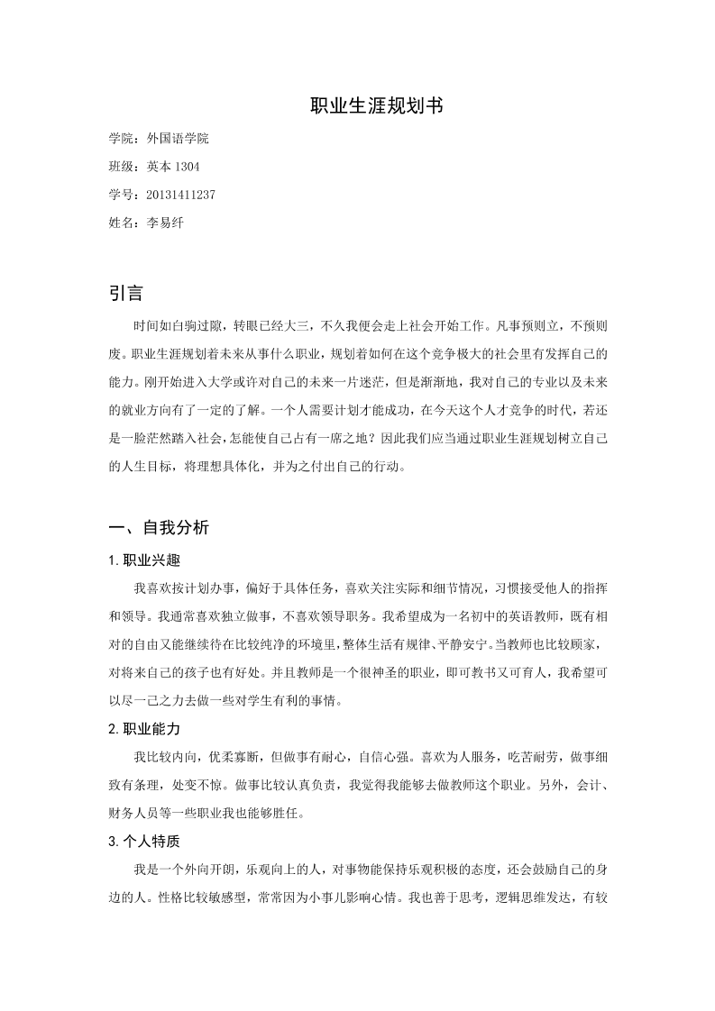 职业生涯规划书-教育专业