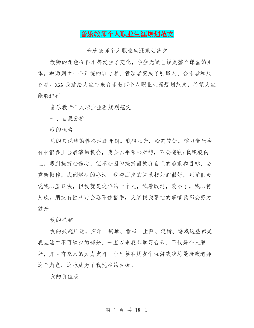 音乐教师个人职业生涯规划范文(最新篇)