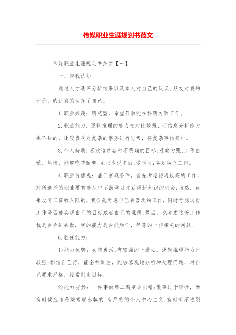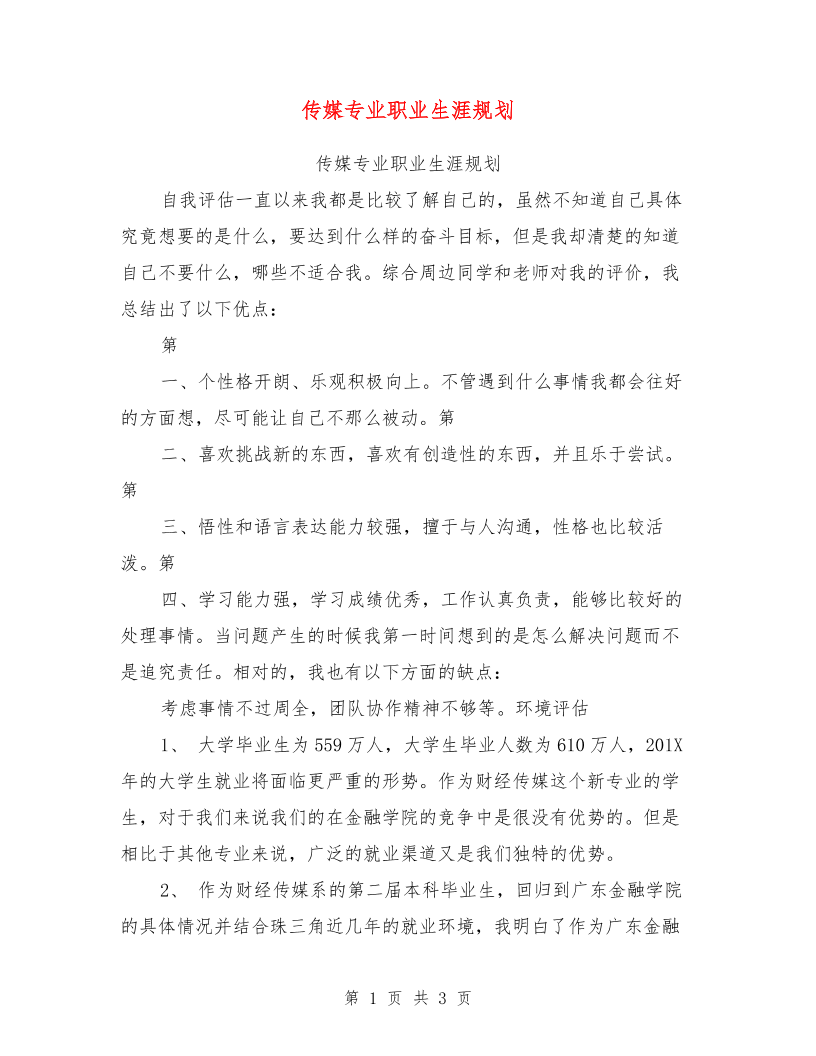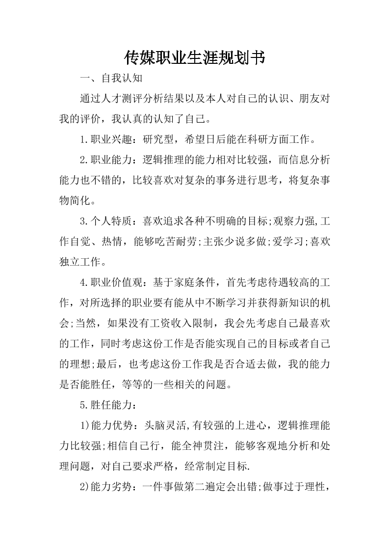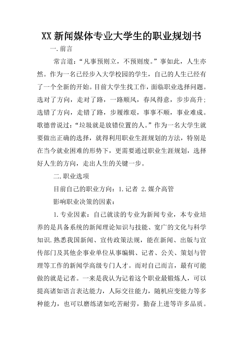新 闻 学 专 业 职 业 生 涯 规 划 范 文