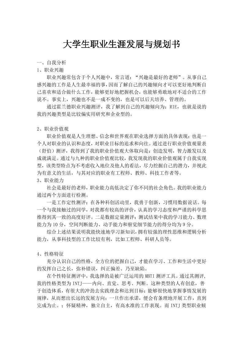 • 生涯规划书模板
