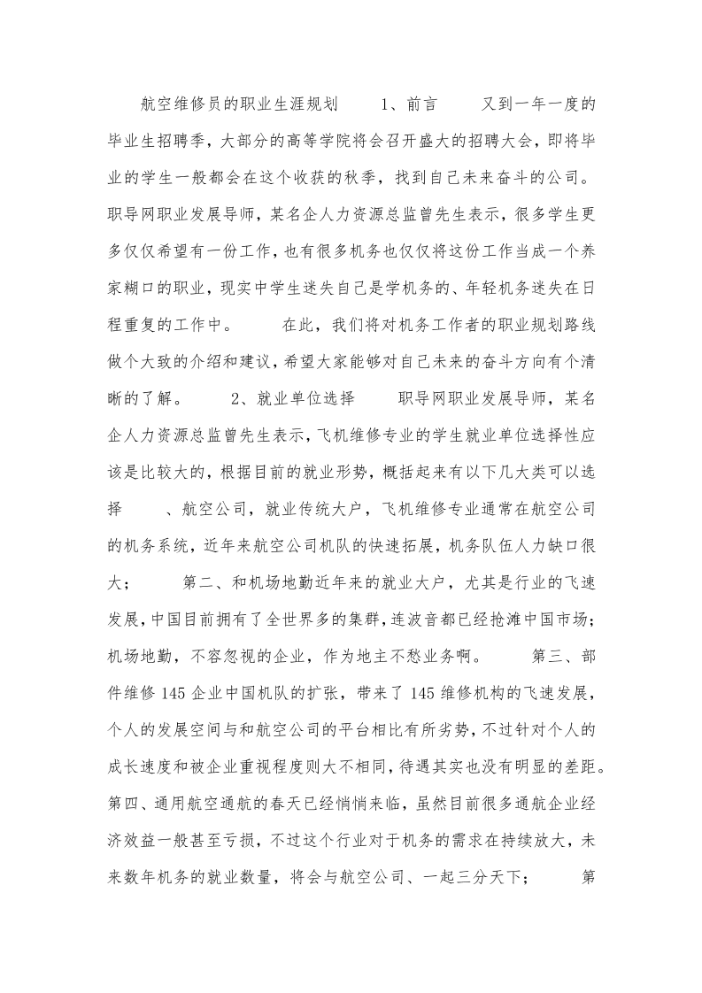 航空专业职业生涯规划