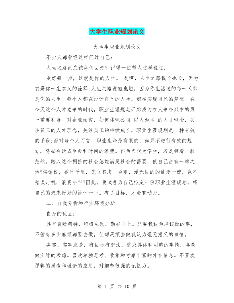 大学生职业规划论文(最新篇)