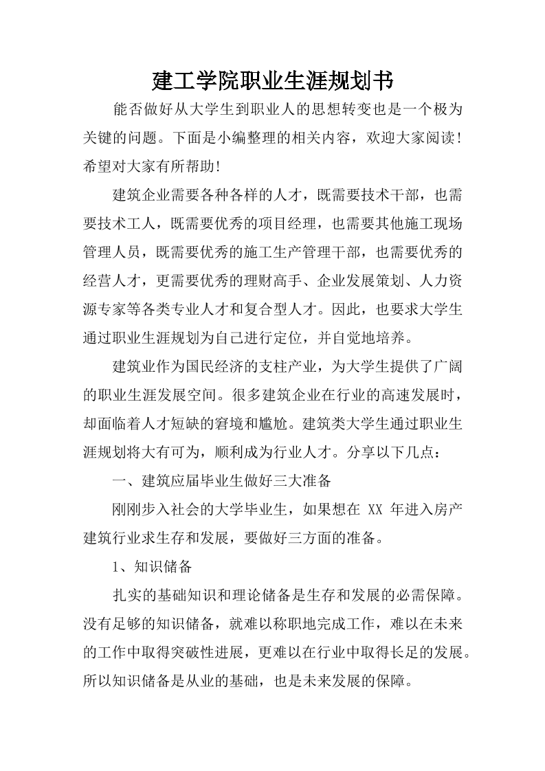 建工学院职业生涯规划书