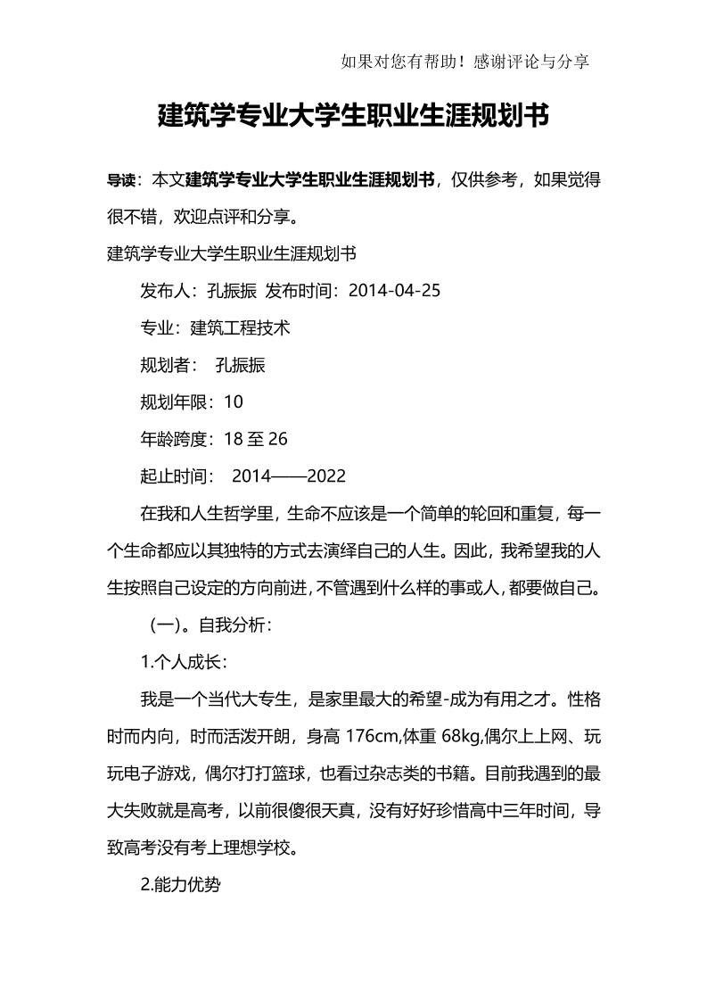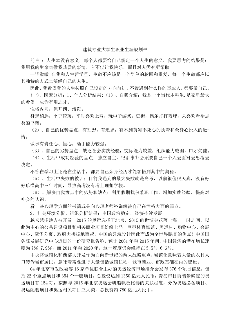 建 筑 职 业 生 涯 规 划 书