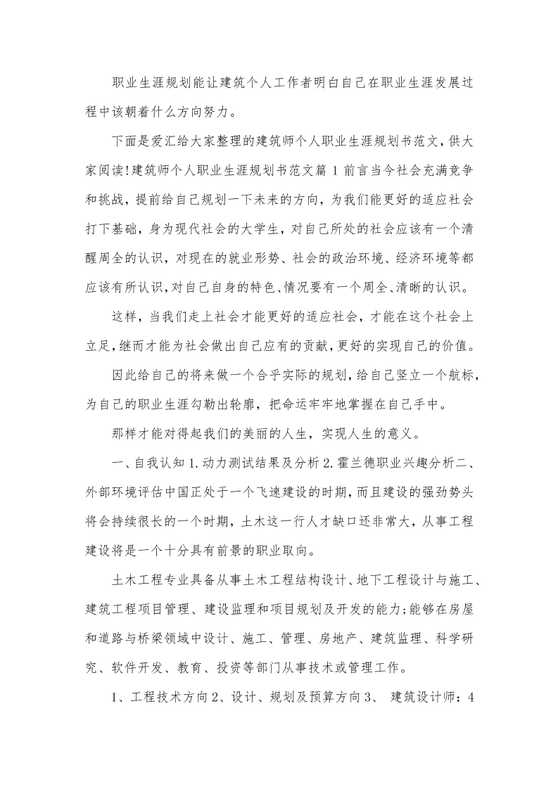 建筑师个人职业生涯规划书范文