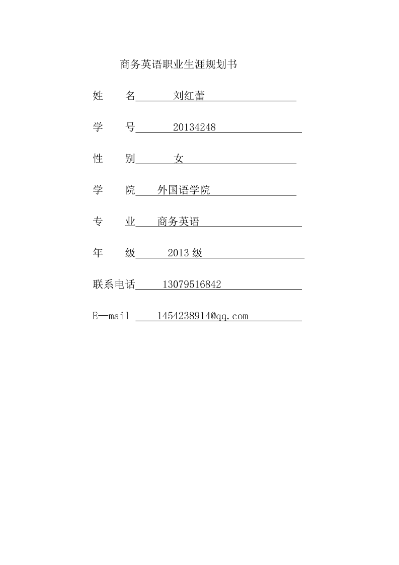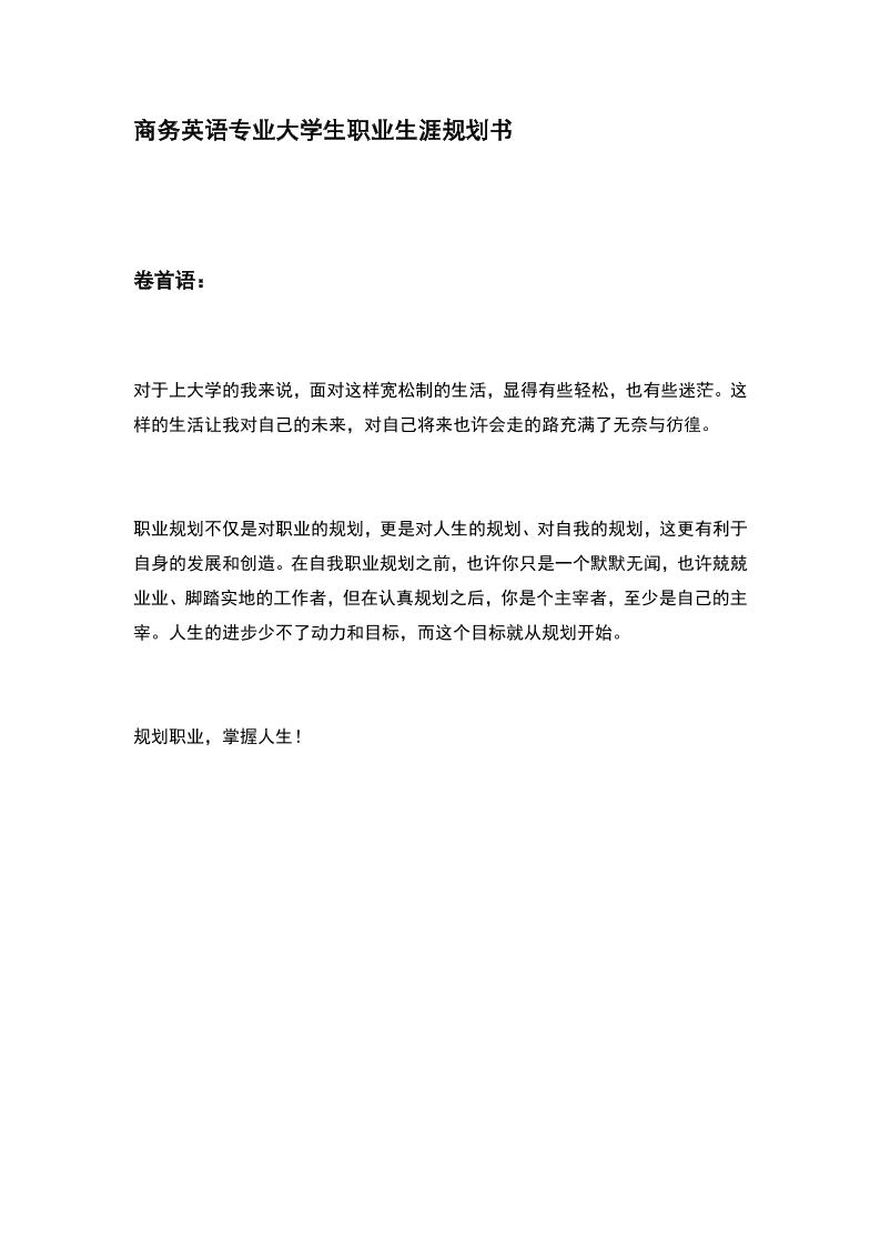 商务英语专业大学生职业生涯规划书资料