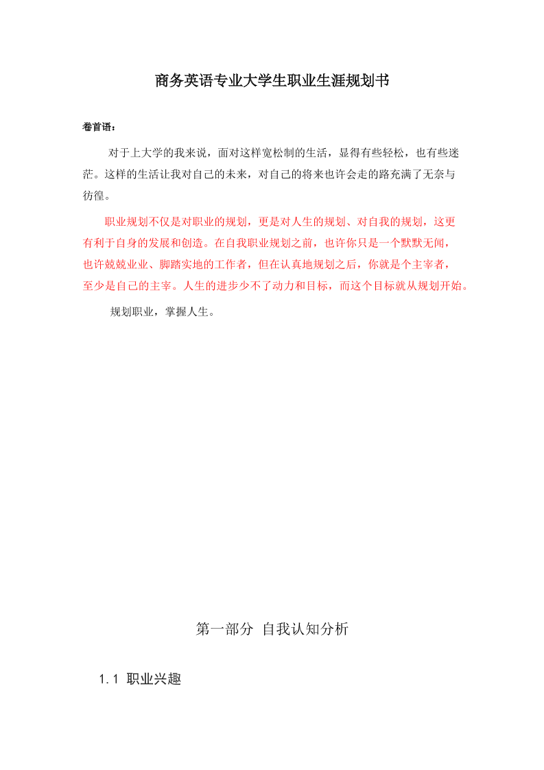 商务英语专业大学生职业生涯规划书-(1)