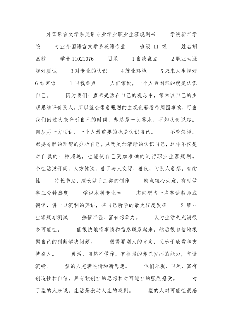 外国语言文学系英语专业学业职业生涯规划书