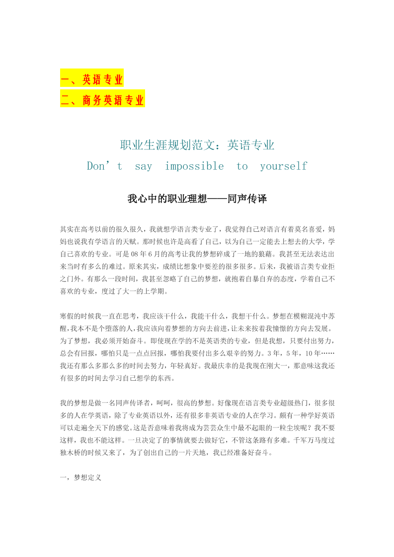 大学生职业生涯规划书范文(英语专业)