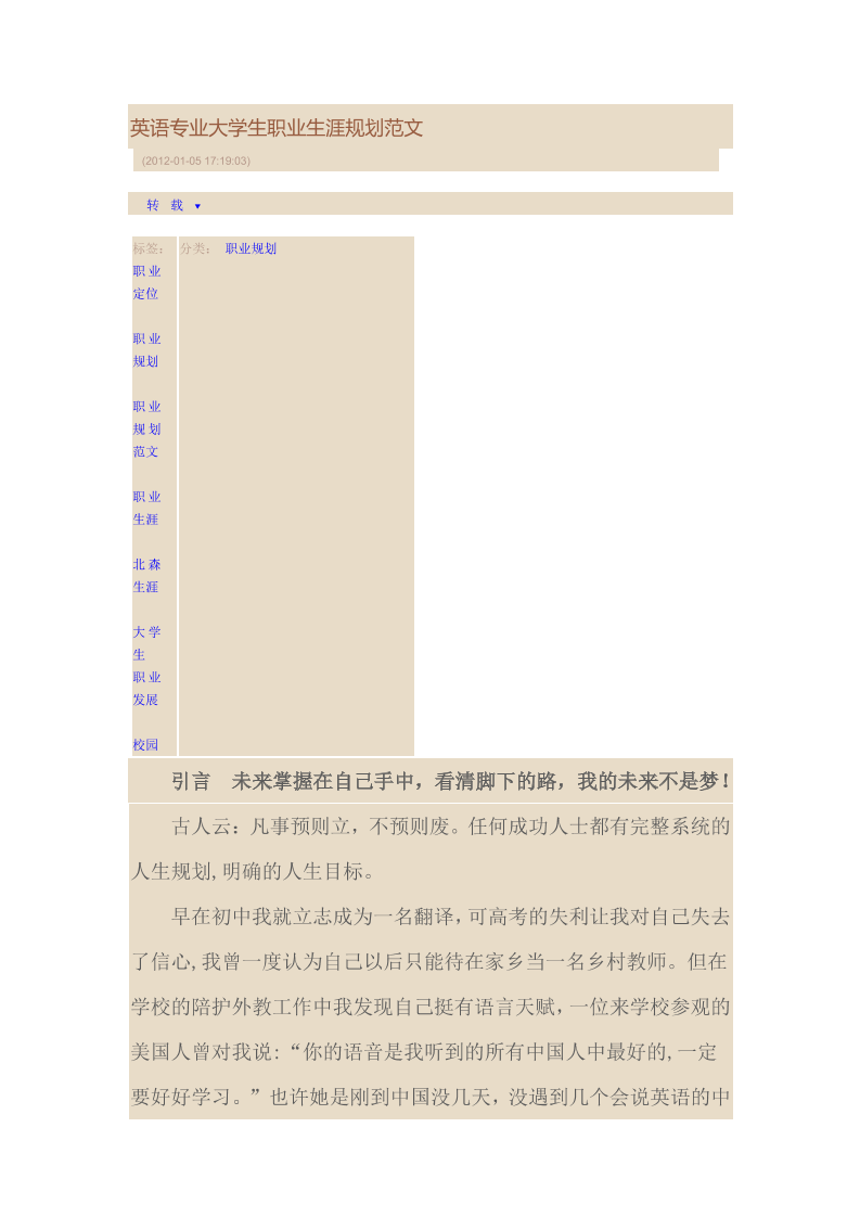 英语专业大学生职业生涯规划范文