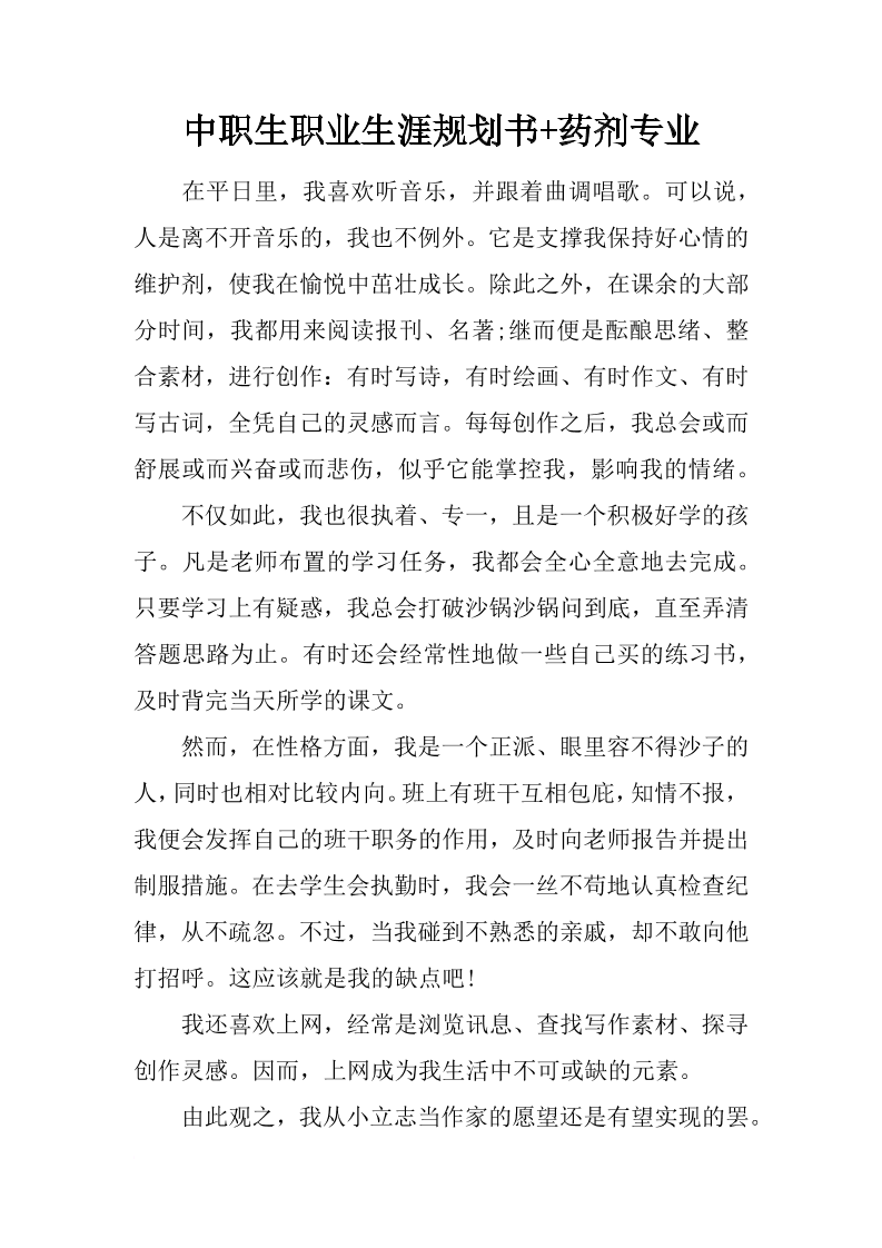中职生职业生涯规划书-药剂专业