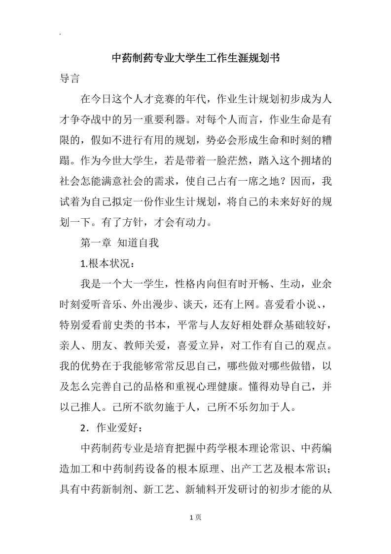 中药制药专业大学生工作生涯规划书