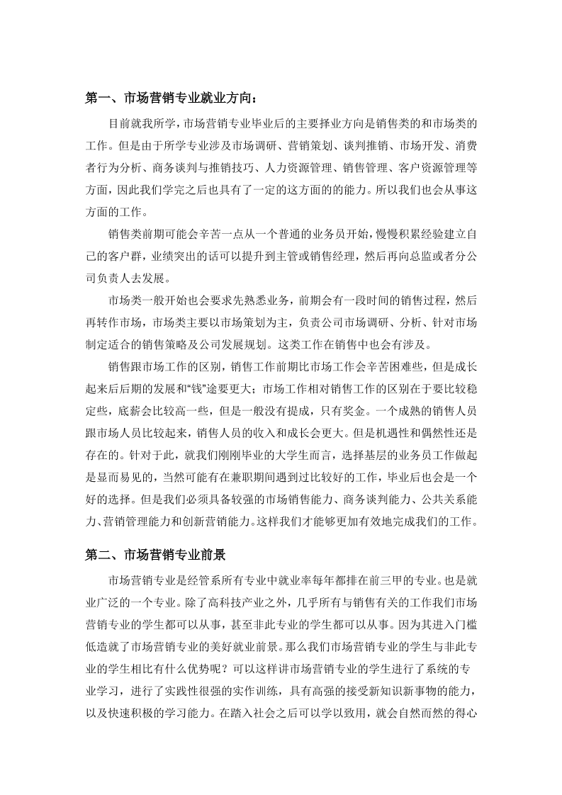 大学生职业生涯规划之市场营销专业