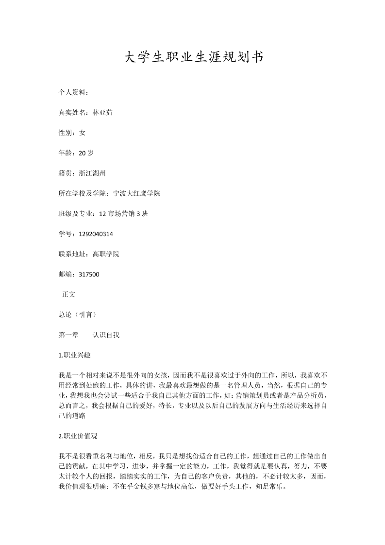市场营销专业职业生涯规划(3000字左右)