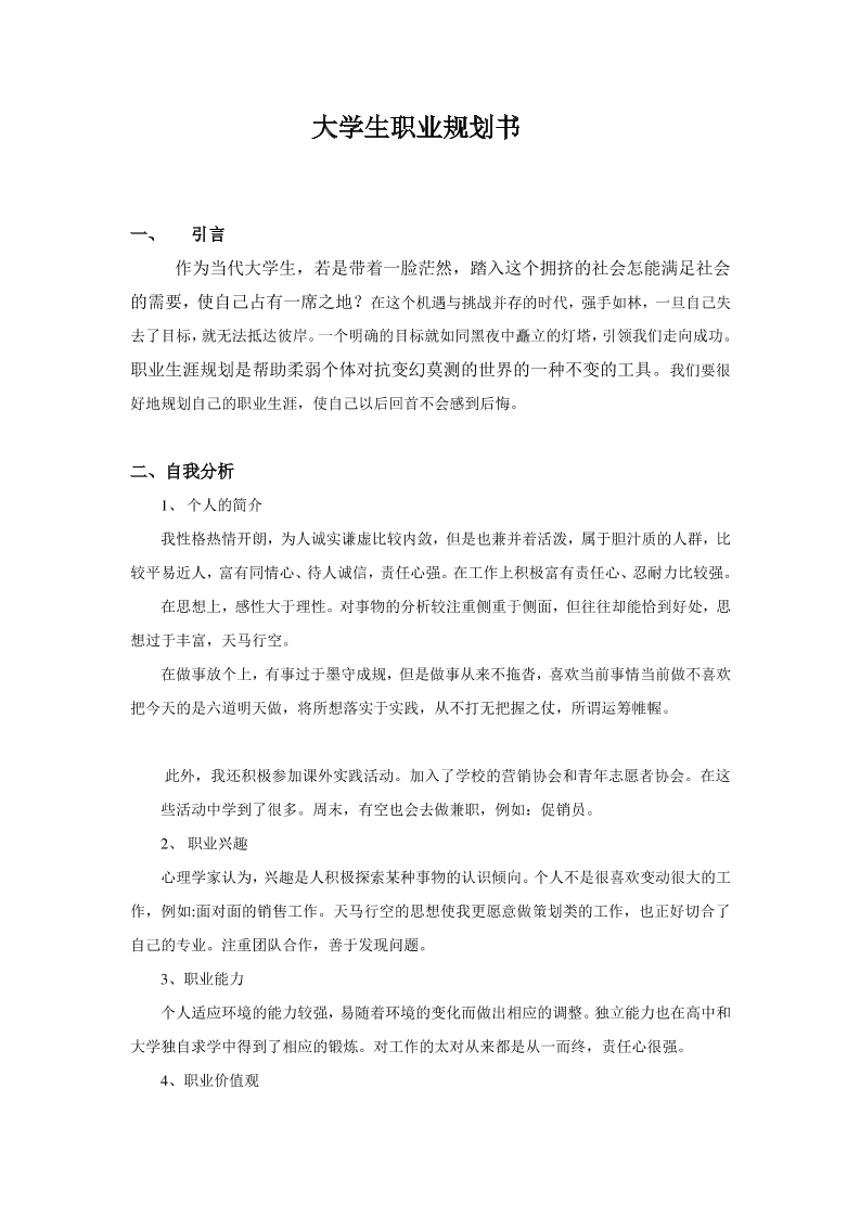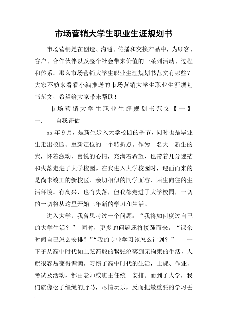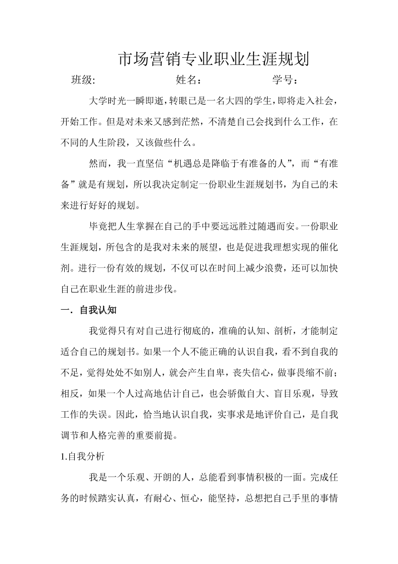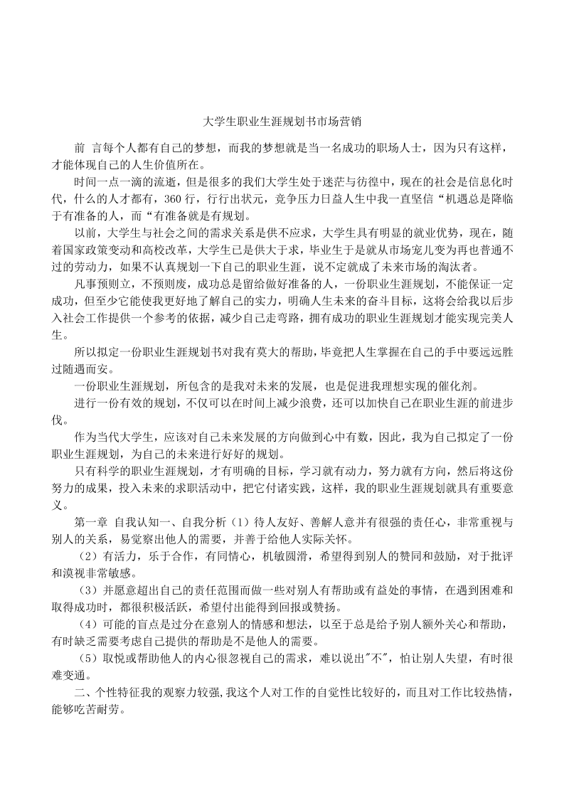 大学生市场营销专业职业生涯规划书 (1)