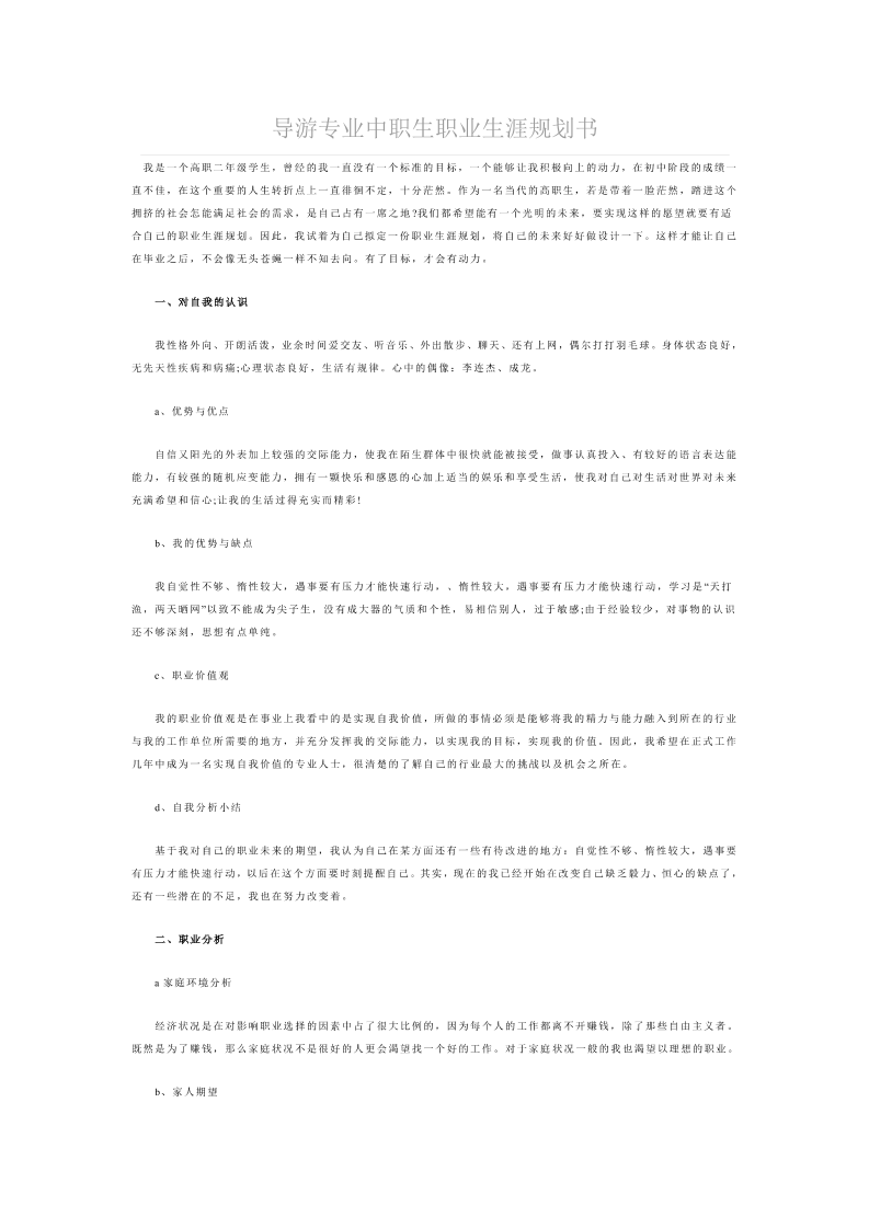 中职生职业生涯规划书旅游专业