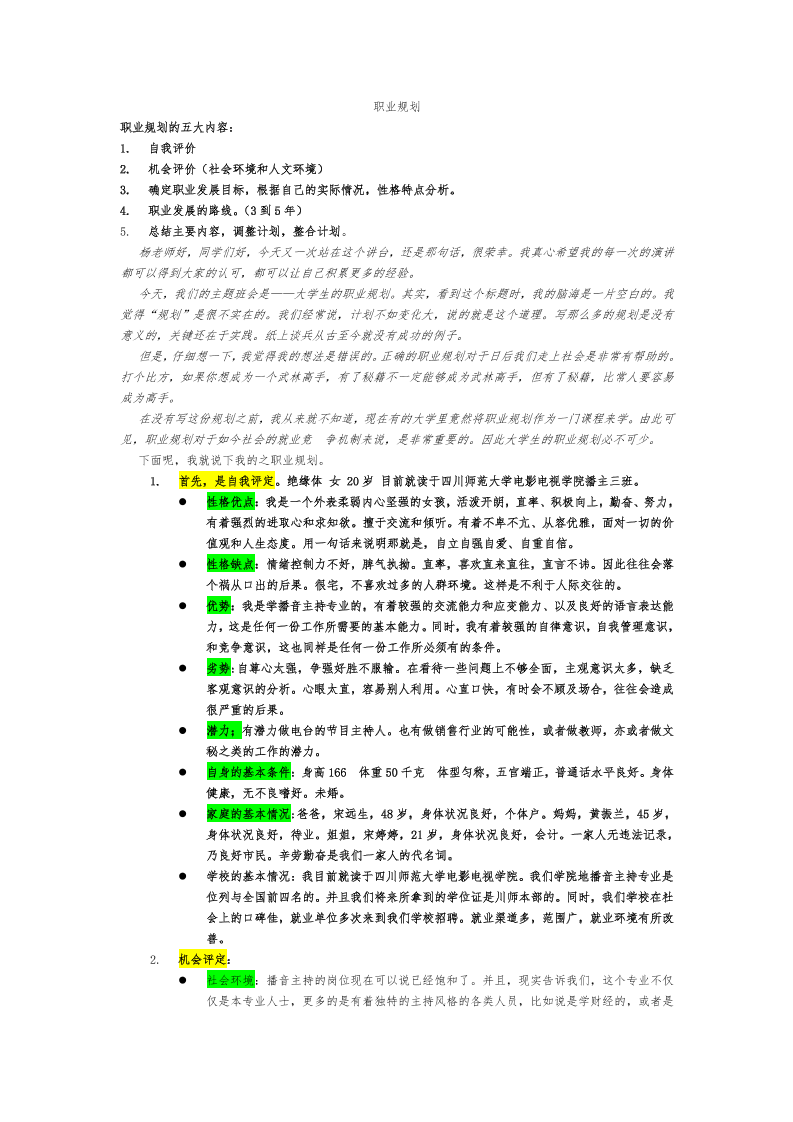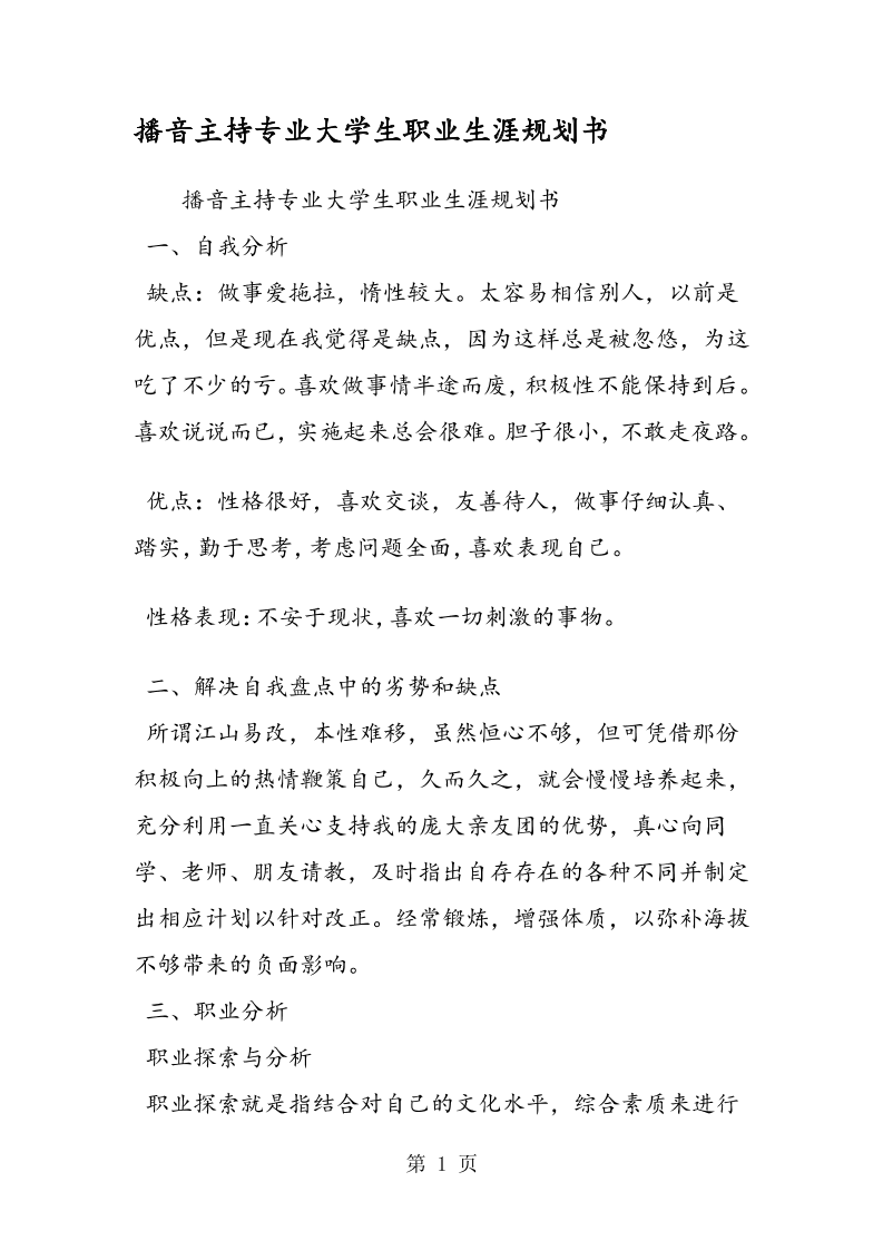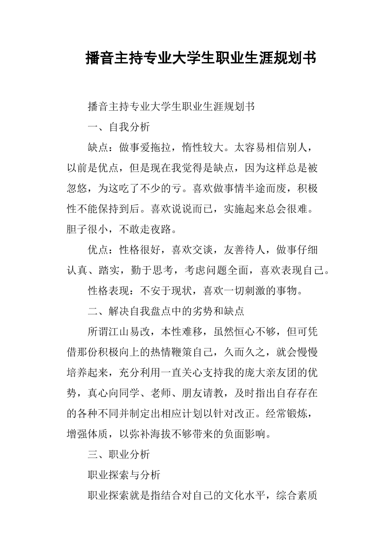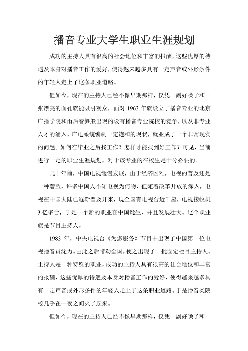 播音与主持艺术专业职业规划—1405班冀晓伟
