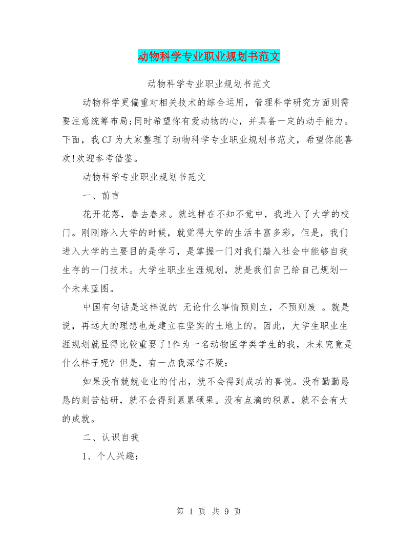 动物科学专业大学生职业生涯规划书-最新精选范文