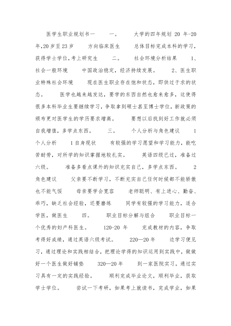 医学生职业规划书与计划