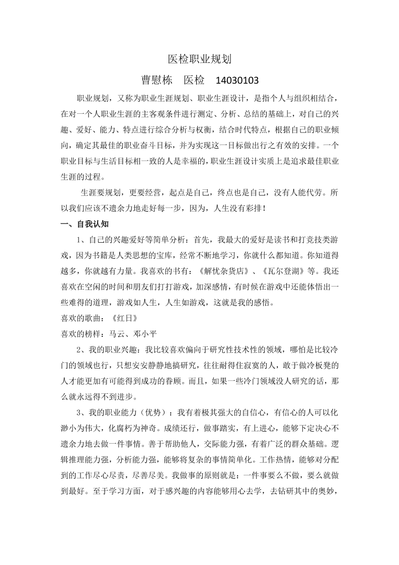 13级医学检验职业生涯规划
