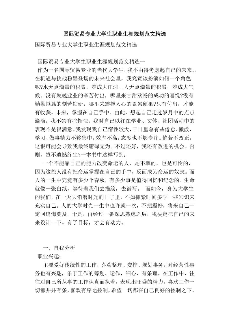 国际贸易专业的大学生职业生涯规划范文范本