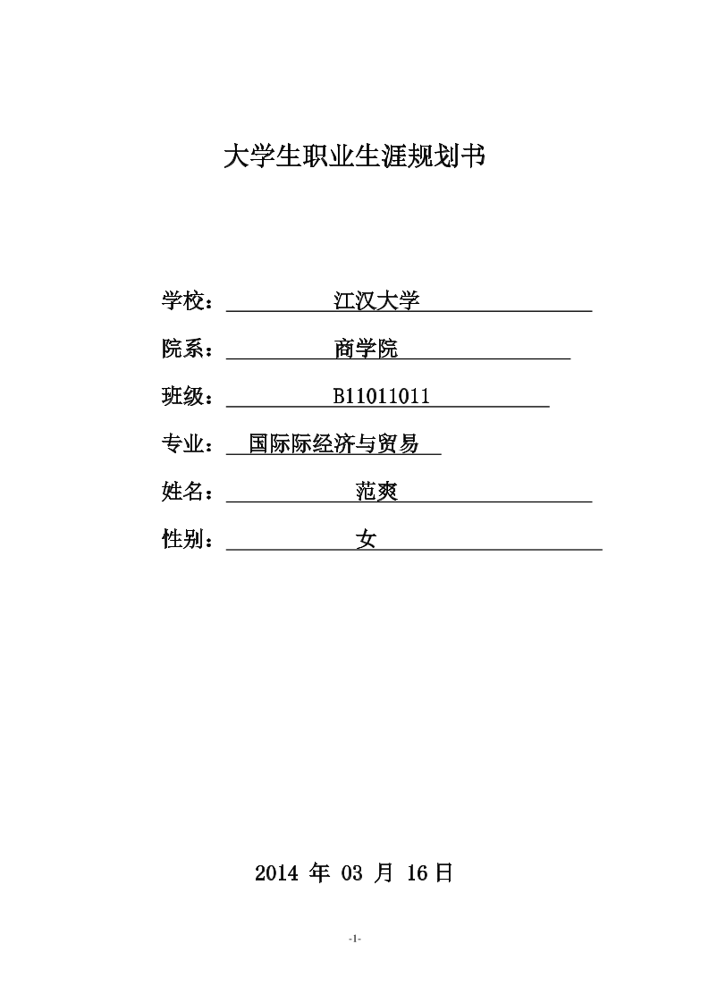 大学生职业生涯规划书范文范本(国贸专业)