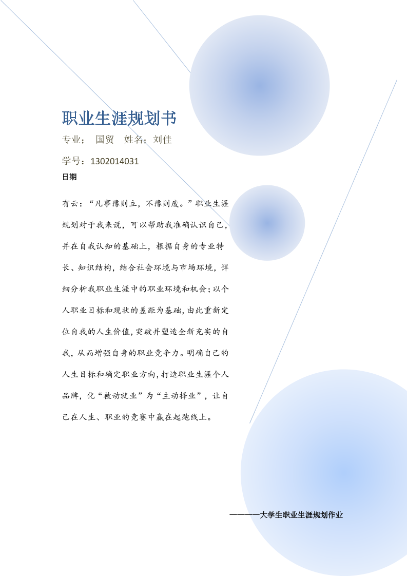 大学生职业生涯规划书(国贸班)