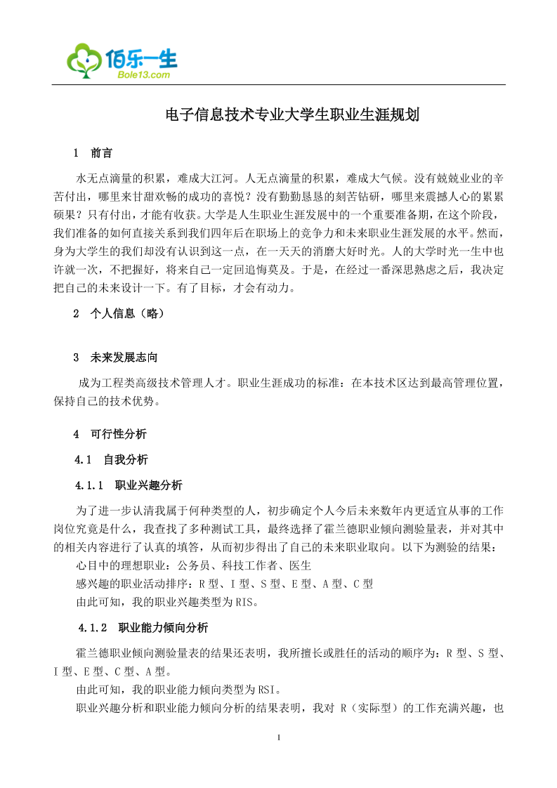 电子信息技术专业大学生职业生涯规划