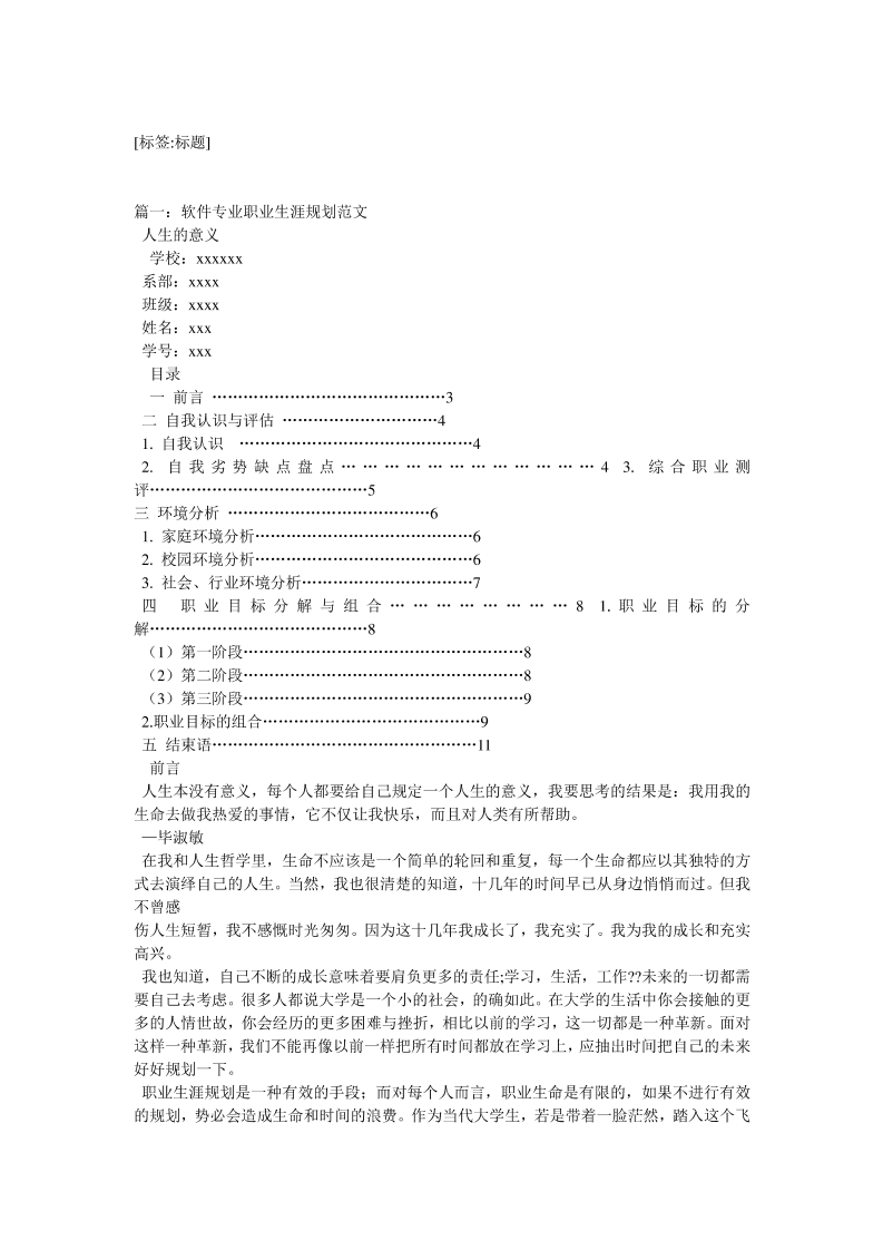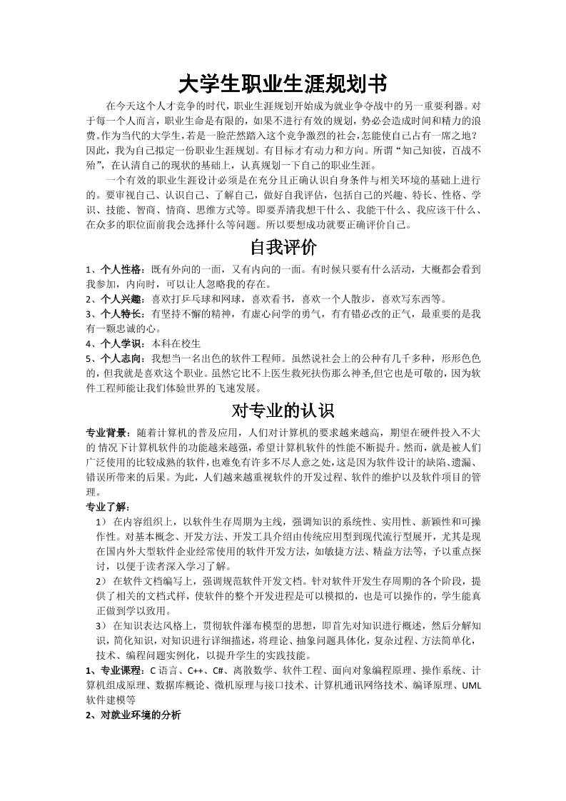 软件个人职业生涯规划-软件行业职业生涯规划范文