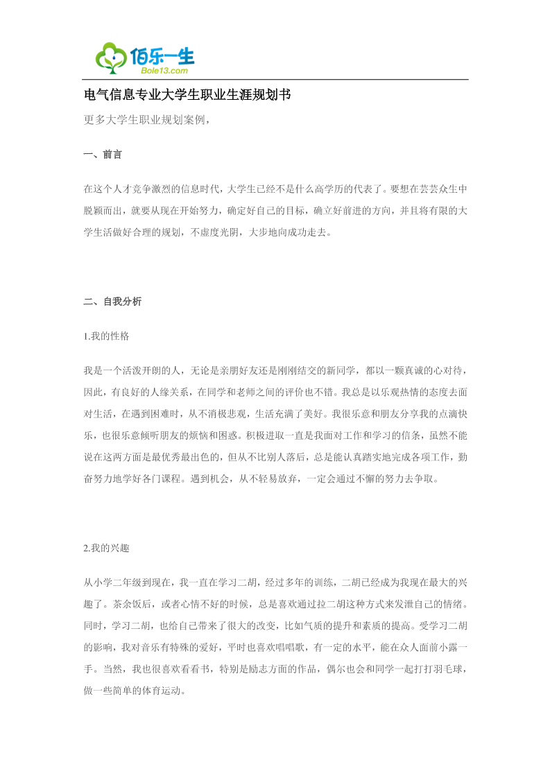 03 电 气 信 息 专 业 大 学 生 职 业 生 涯 规 划 范 文