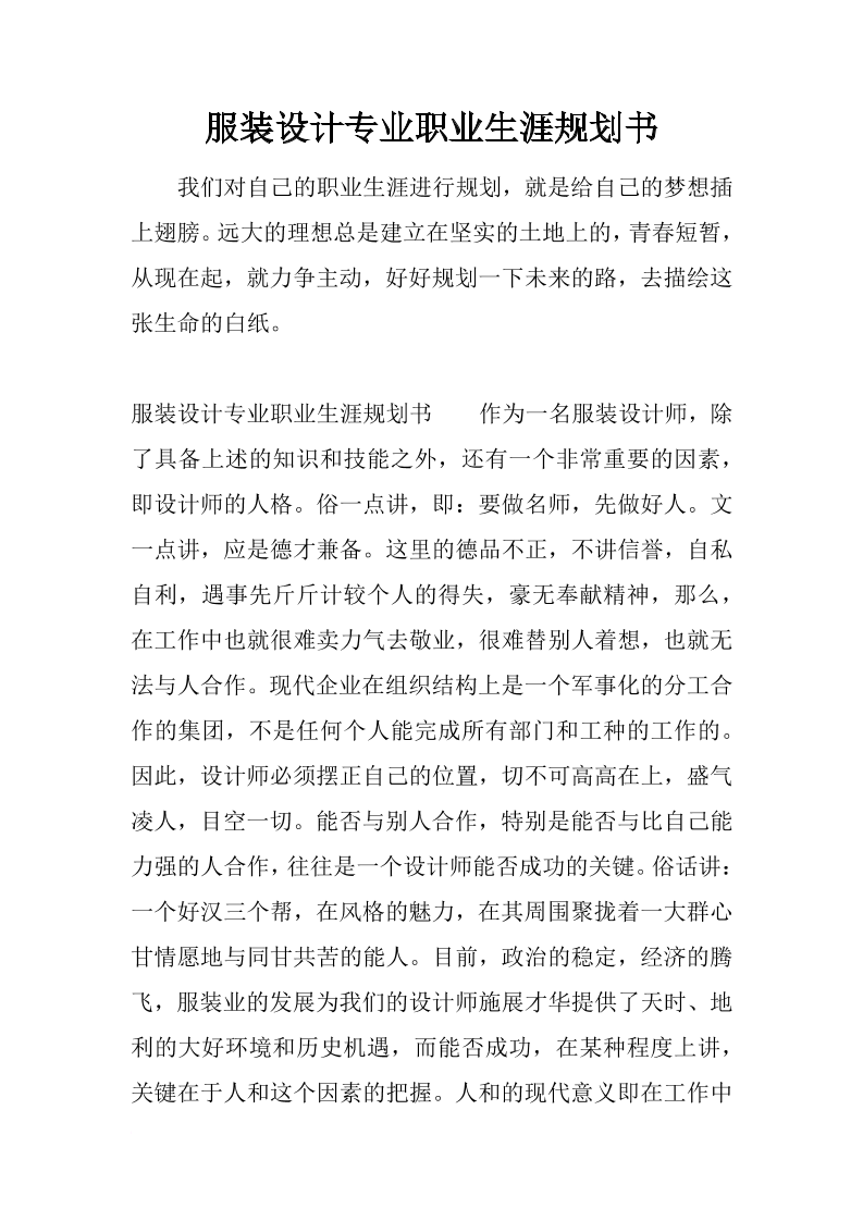 大学生职业生涯规划书服装设计