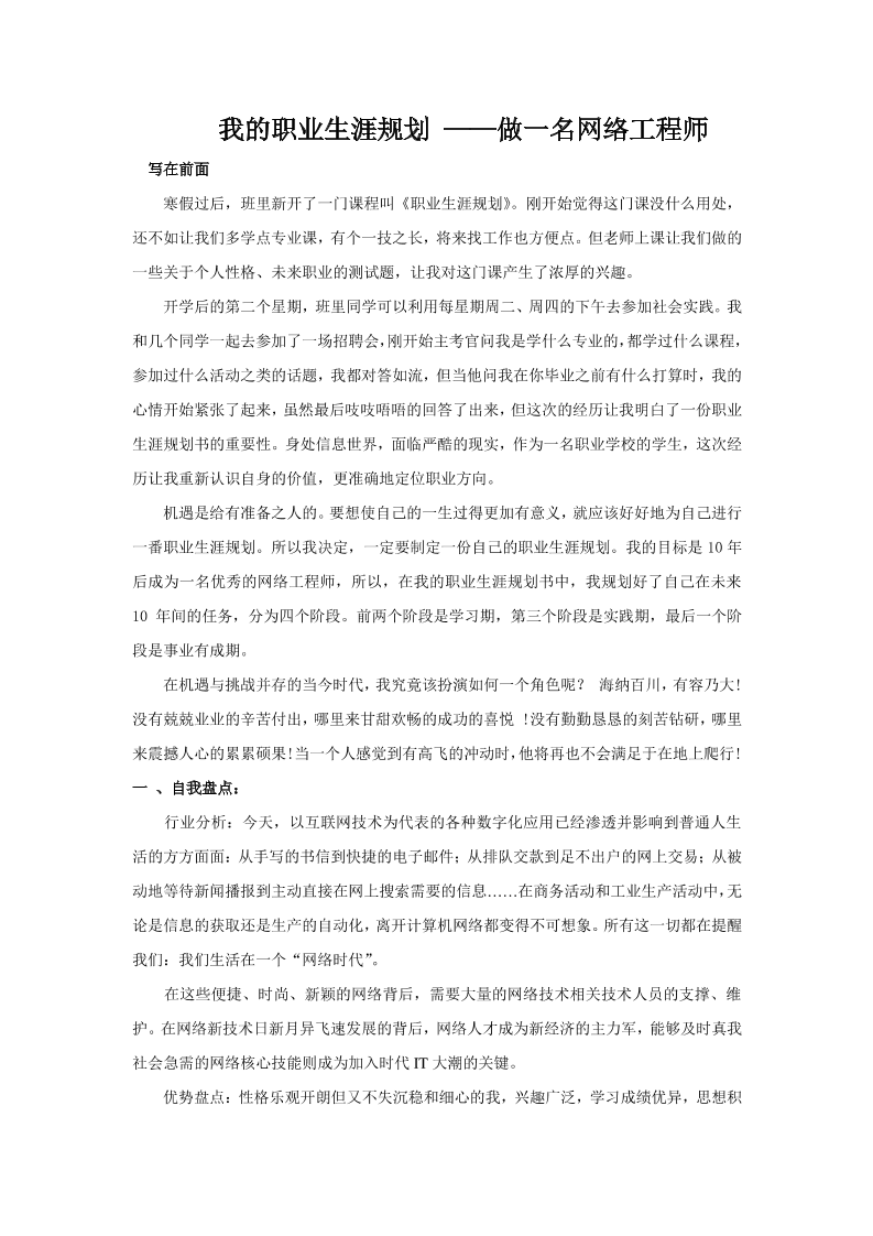 职业规划理学院网络工程专业职业生涯规划设计书模板WORD