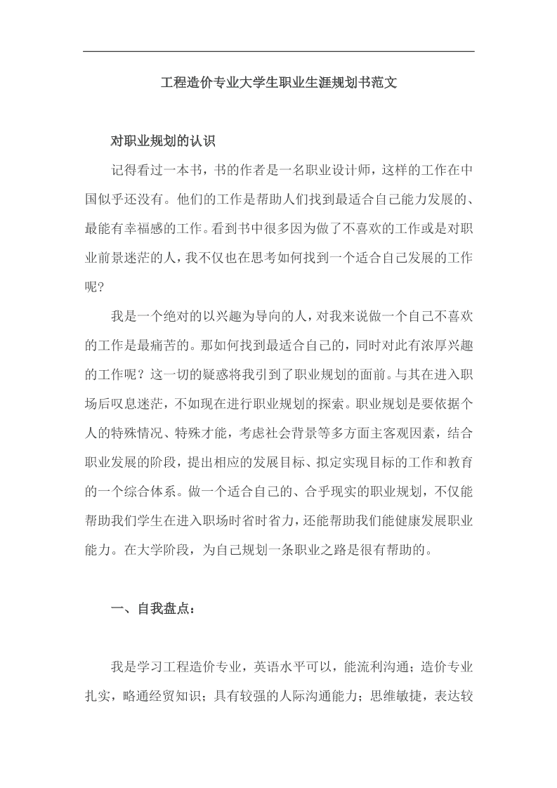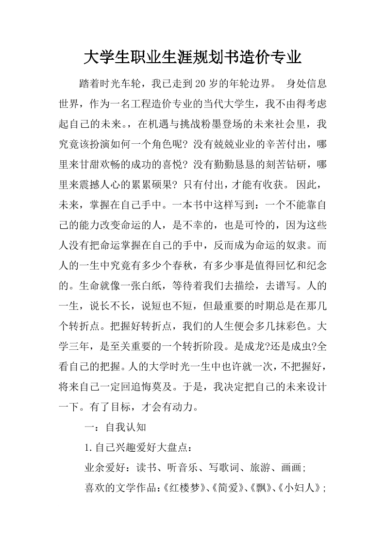 大学生职业生涯规划书造价专业