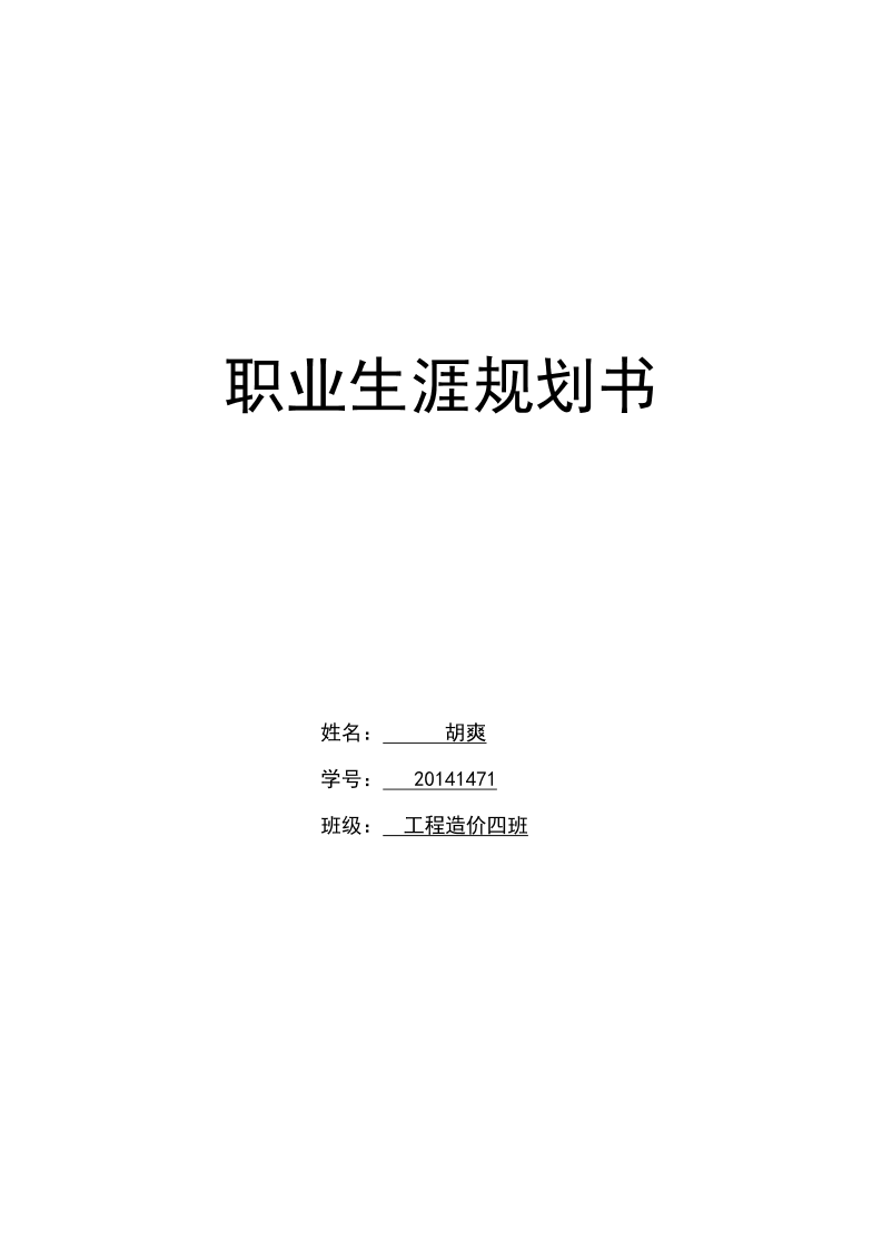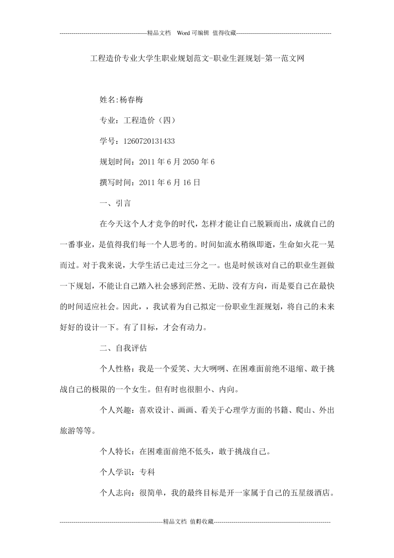 工程造价专业职业生涯规划书