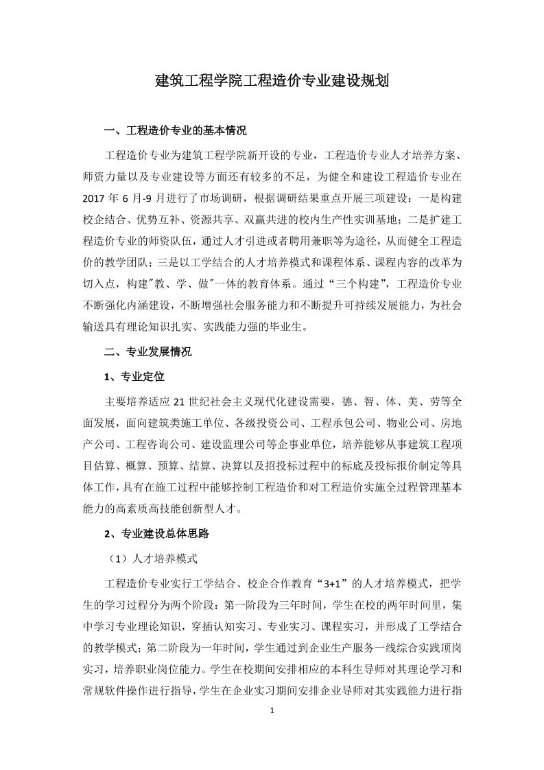 工程造价专业建设规划
