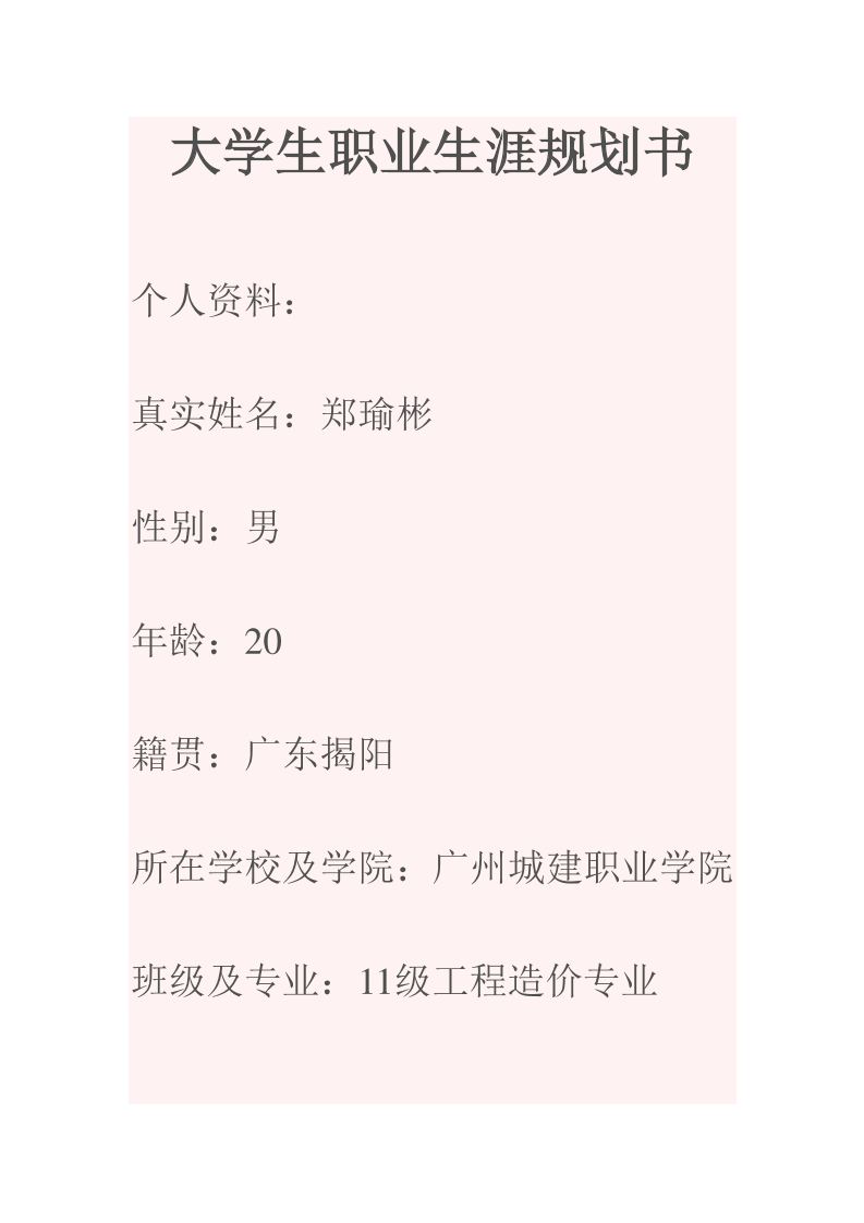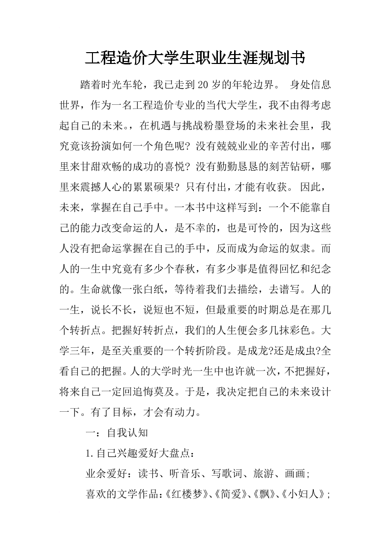 工程造价专业大学生职业生涯规划书范文(1)