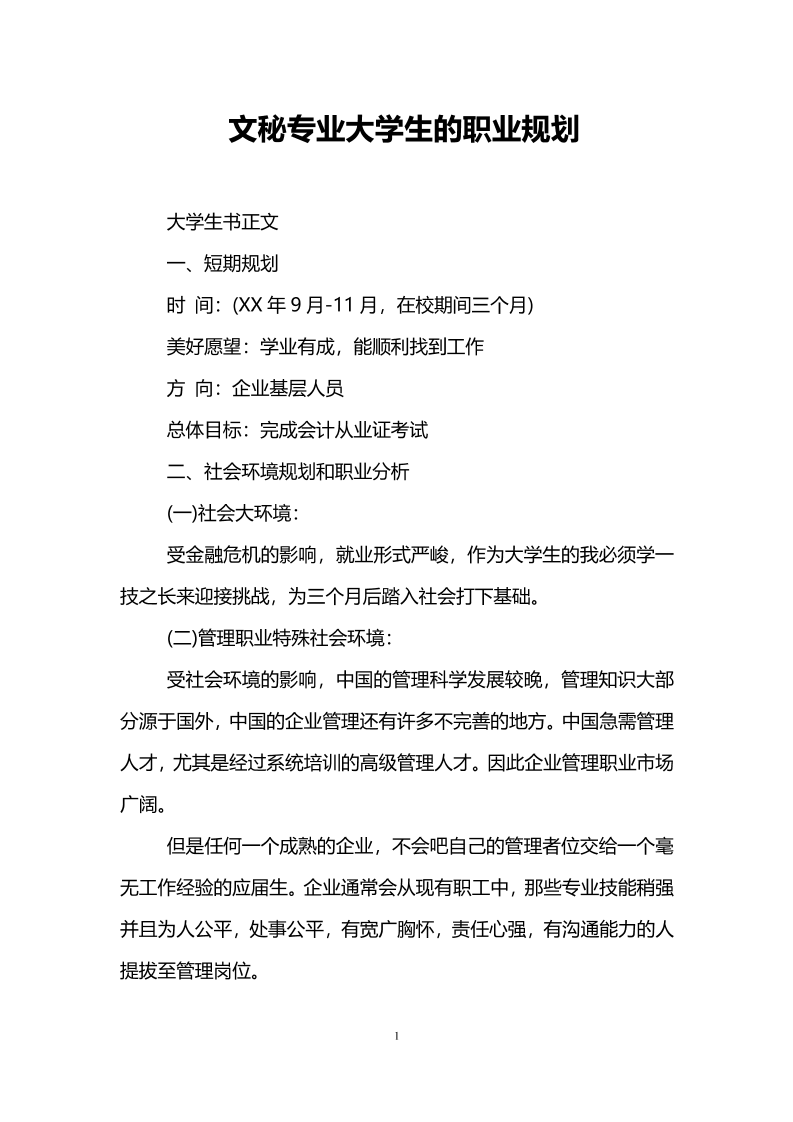 文秘职业规划书