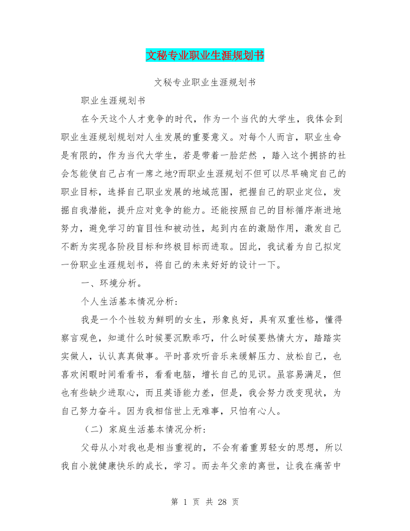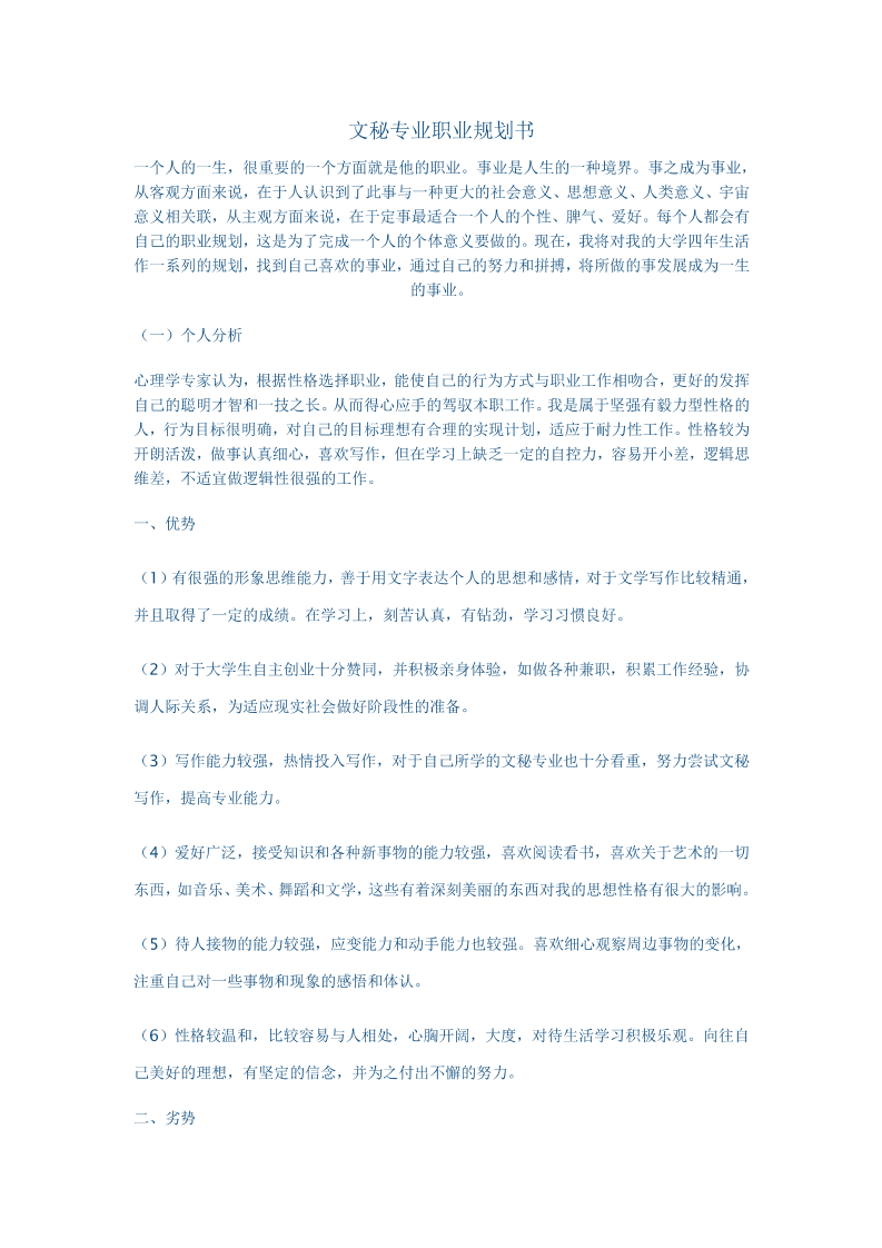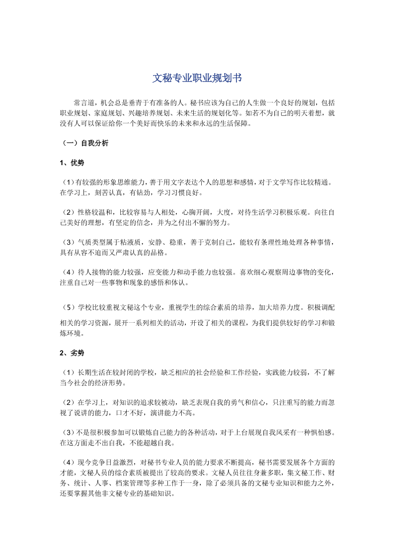 文秘专业职业生涯规划书(完整版)