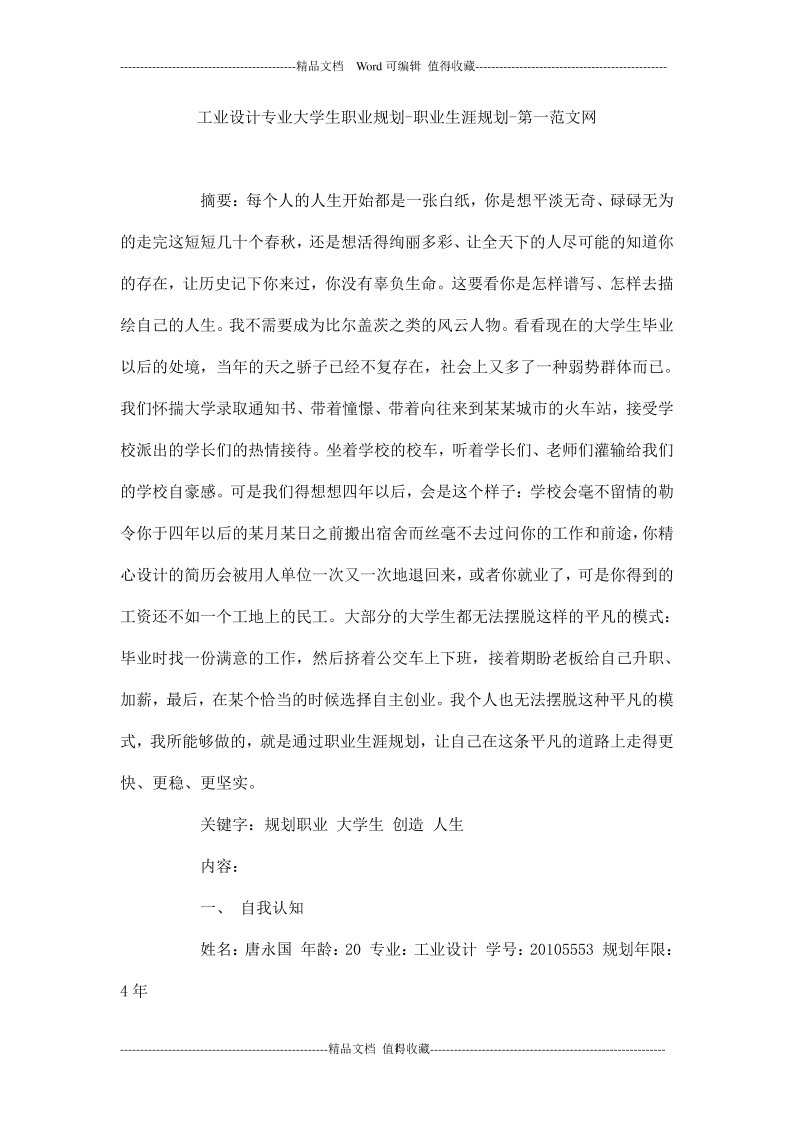 工业设计大学生职业生涯规划书 (1)